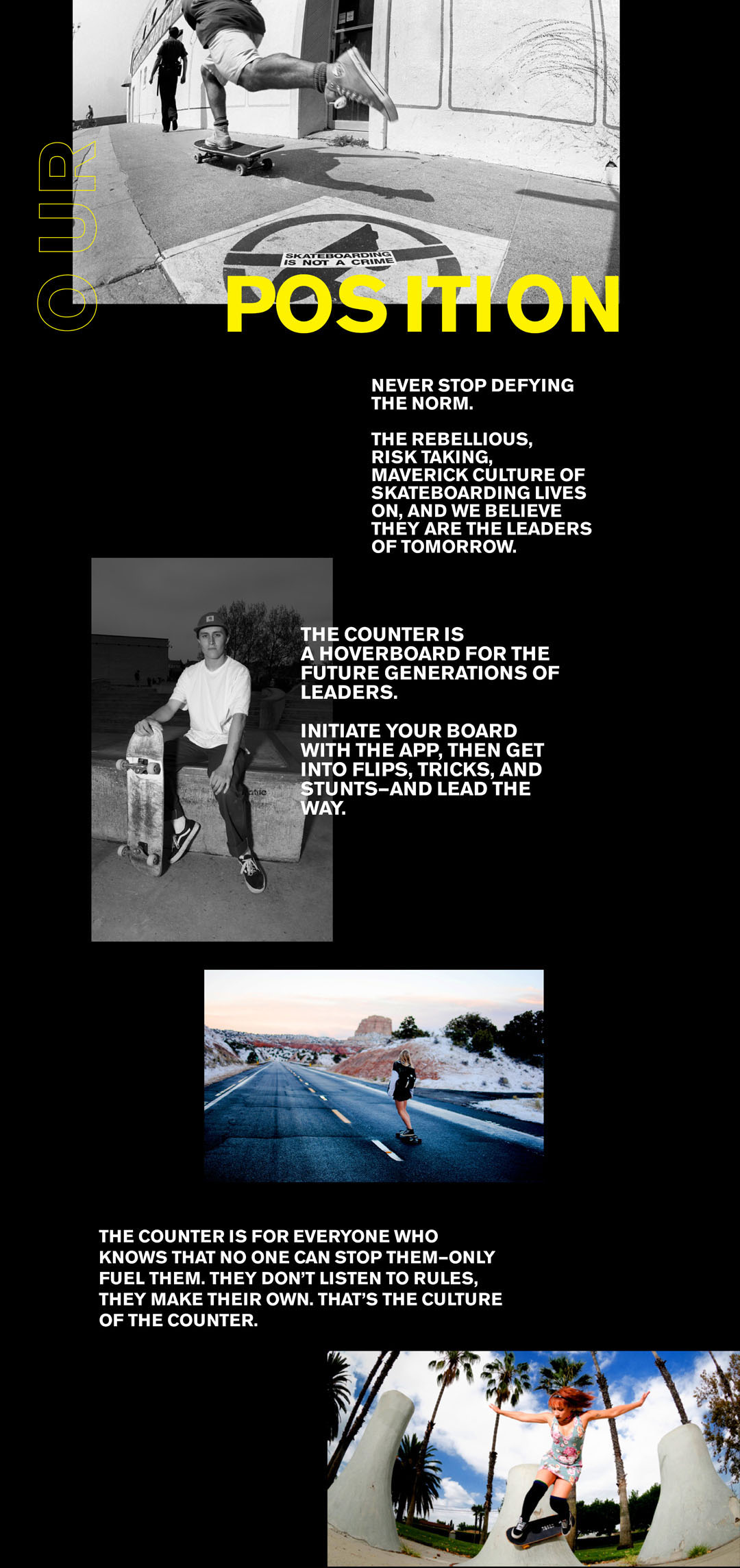 The Counter. is a hoverboard company directed at skateboarders/skateboard culture. Thus, The Counter.